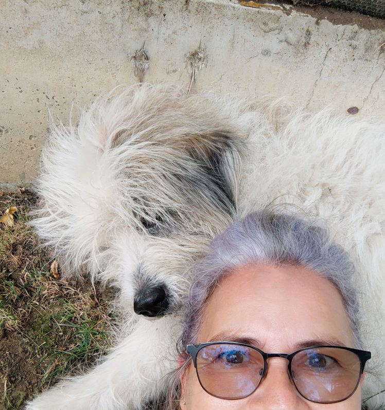 Zilele astea mă chinui din nou să o perii – un efort serios, pentru că are o blană incredibil de deasă. Am aflat și de ce: în ea curge sânge de ciobănesc mioritic, iar asta vine la pachet cu o blană dublă, formată din păr de acoperire și un strat dens de subblană. Această blană are rol termoizolant și de protecție – în caz de atac, până ajunge prădătorul la piele, rămâne cu colții prinși în blană.
